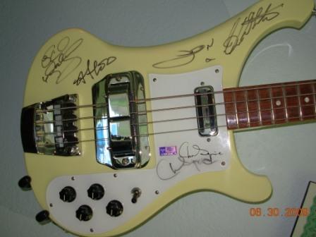 they were starting a tour here in Seattle a few years back and they had two public rehearsals in Kirkland at an arts theatre. They were charging quite a lot to see rehearsals but it was going to charity. I took the bass down there and after the show we waited around and finally caught Rick outside the theatre. The others had already left but a guy who works with them said Alan was just a block away eating at The Kirkland Pub. We walked down there and Alan was very courteous considering we were interrrupting dinner. That guy (??name) told me if I wanted the others to be at The Paramount around 3pm when they arrive for soundcheck and that's where I got Steve, Jon and Chris. They put on the greatest show that night too! We were pretty close to the front and after their first song I looked around and the smiles were incredible. They are truly amazing!!