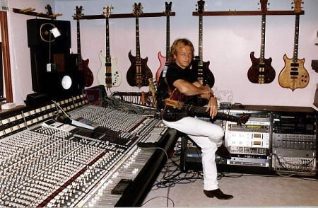 Great photo; in addition to the Alembics I've always had a thing for the Starchild Jaydee (the white one) at the back. The first time I saw that bass was like the first time I saw JPJs Triple O, my jaw just went through the floor.