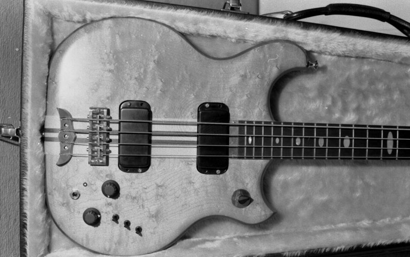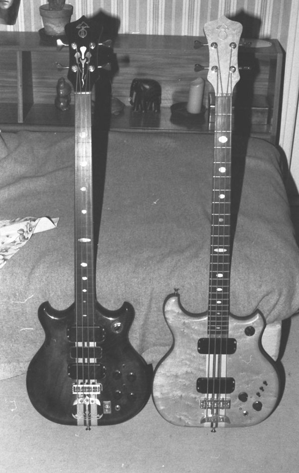 with his sister, short scale Series I fretless and inlays (customized by a friend):