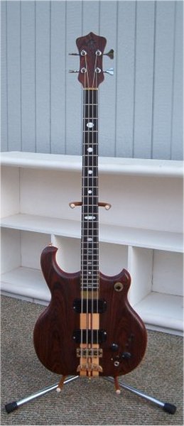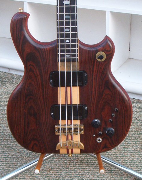 Well, as long as I'm posting, I might as well get the last of my Alembic buddies up on the site. This is an 85 model that the seller said had a Coco Bolo top, but the wood card says Bocate. I've got a Bocate topped Orion and this wood seems too dark to me. It looks like other examples of Coco Bolo I've seen on this site, and I have to admit, I really want it to be Coco Bolo. Can anybody clarify this issue? Is there overlap in the woods appearances that might suggest one when it is the other? Regardless of the wood type, the little bass sounds amazing! No surprise there, anyway!