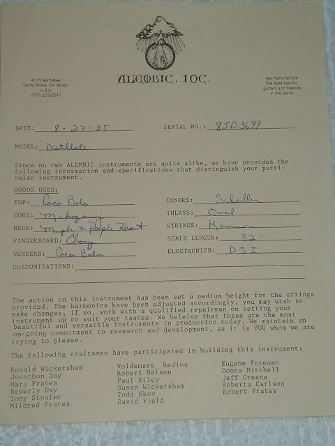 I ordered this bass new and it's been the foundation ever since. It always sounds incredible in the studio and live. Thanks to everyone at Alembic for the beautiful instrument.