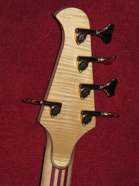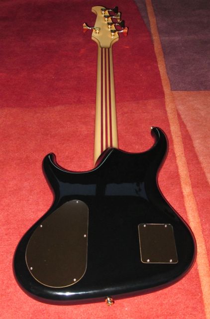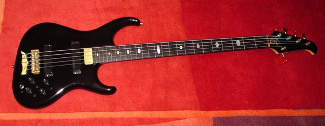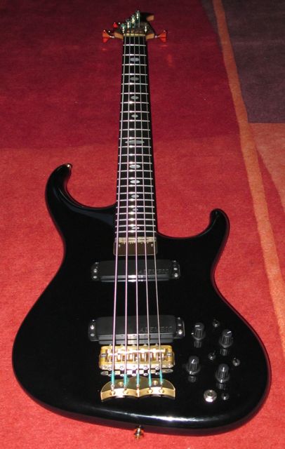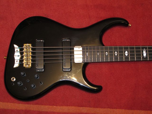 The build Record is as follows. ------------------------- Model Name: Europa Model Number: ULB5 Completed: 23/01/2009 Scale Length: 34 inches Fingerboard: Ebony Inlays: Mother of Pearl Ovals Machine Heads: Gold Alembic-Gotohs Top Laminate: Flame Maple Accent Woods: None Body Wood: Maple Back Laminate: None Neck Woods: Maple & Purpleheart Finsh: Polyester Gloss with Satin Neck Feel Electronics: Signature - Master Volume, Pan, Filters x2, Q-Switch x2, Mono Output.  Custom Options: Side LED's in Red with on off toggle switch Custom Black/Clear Finish Toggle switch for on/standby Elan in-line Neck  100% made in the USA  Jazzyvee