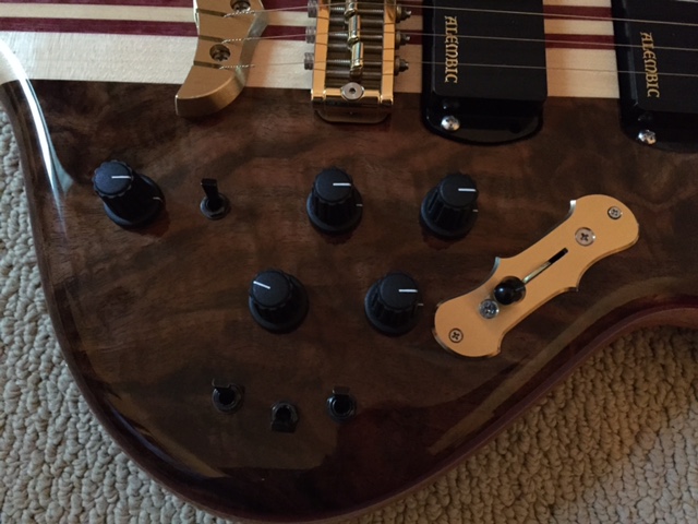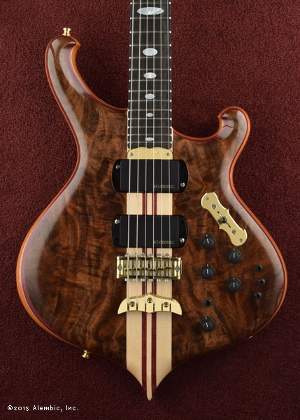 Wonderful guitar, spectacular walnut, and for me, that brass surround for the 3-way just says ALEMBIC.  Enjoy !
