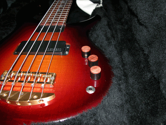 Way cool bass and way cool knobs.I have three purplheart collet style knobs with ebony caps and abalone markers on the way for my new Rogue 5 from THG.You're THG knobs are beautiful and look great on you're new Excel