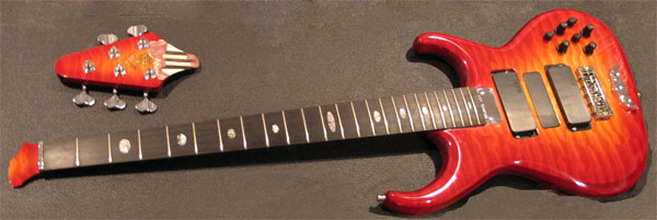 This Series II bass was destroyed when it inexplicably fell off a guitar stand and was decapitated. Thankfully, the bass was insured with Heritage! After wrestling with the decision about how to fix this mess, Heritage made it easy - they decided to total the bass, since the estimated repair cost plus expected depreciation (which is covered by my policy) was close to replacement value. Plus, since the repair would have involved placing a new scarf joint - glue joint - between the nut and the bridge, the whole sonic point of a neck-through bass with ebony neck laminates would have been diminished, if not lost. All they requested was that Alembic provide a letter stating that a repair could not fully restore the instrument to its original condition, and within a month I had a check in hand for the full insured value of the bass.