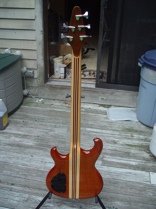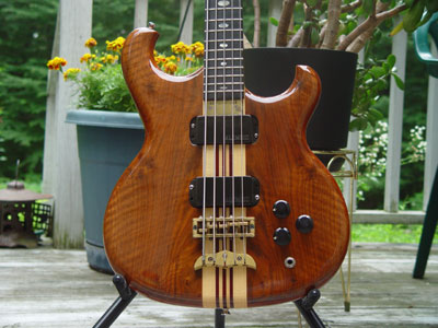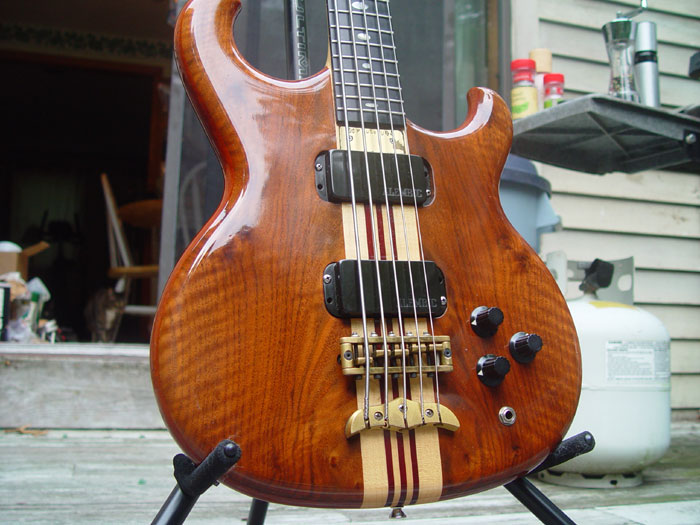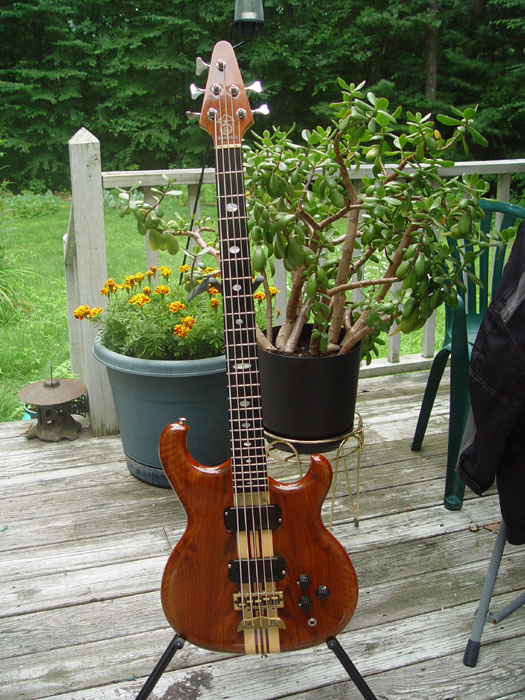 Here's my first attempt at putting up some pics. The bass is a flamed walnut top over mahogany five string Persuader. As far as I can tell, it's a pretty typical model for the day...