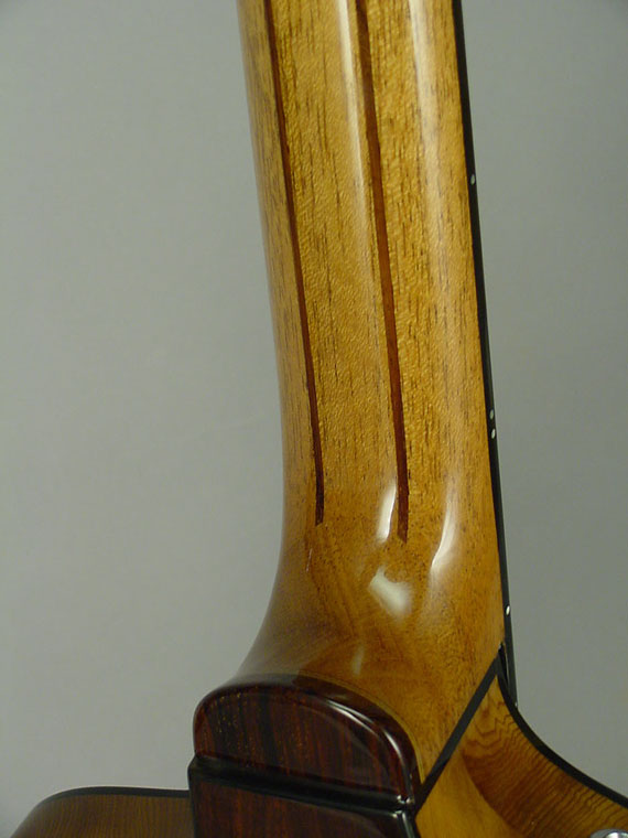 This guitar with an early abalone Alembic logo has according to Rick Turner not been built by himself for Alembic. According to Rick this could have been a Gary Cooper pre-Oasis, but it is not and never was an Alembic, no matter what the logo is. A lot of parts escaped the shop and wound up in quasi-illegal employee guitars. Could have been one of those...