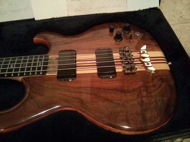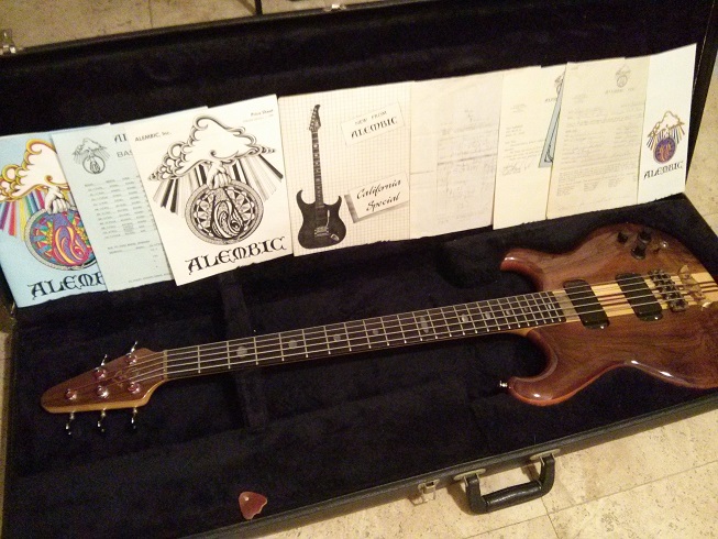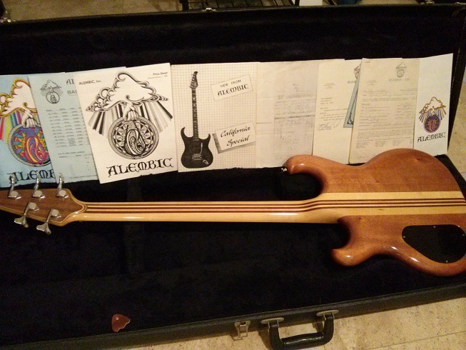 Excited to say I'm new to the club here, as of this past weekend: medium scale '86 5 string Spoiler. I came upon one of those once in a lifetime kind of deals where the second owner had all of the original paperwork when it was originally purchased as well as a bunch of Alembic literature. The bass was used very little in the past 29 years but the brass looks like it could use a good cleaning.