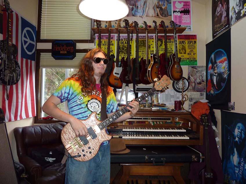 Hello all! This is a little late but I've only owned my first Alembic for 3 days now so here we go, My search for the sound started at 14 for me. I was watching the Grateful Dead movie and when they started showing Phil?s bass and the sound! Holly $?!# What a beautiful sound! I had just bout my first bass a squire p bass at that time but one day while hitting junk shops my 2nd bass found me. A Conrad H-2 hollow body sun burst bass! It?s a Japanese Guild Star fire copy! Little did I know were that bass was taking me. By 16, I was playing with guys at cafes and bars! At that point I had 6 basses most just cheap stuff but still I loved plugging in each one and hearing how different they were, Then on my 17th b-day I was given a gold Epiphone Jack Casady bass and WOW! By this point my little squire amp couldn't cut it but life had a big surprise waiting around the corner. I went to a small school out in the country and one day while helping clean up a storage space out of the dust and darkness came the light, in the form of a 1968 fender bassman 100 with the 2-10 2-15 cab! I had to bring a bass with me the next day and see it still worked and it only took one pluck to know, I had to have this amp! Within 3 days of conducting sonic experiments at school led the principle to let me and I quote, "barrow it for an extremely long time" since it was school property he couldn't tell me I could have it but its still here 5 years later! But it wasn't till the dead's last show this May that I really found out about Alembic. The show was The Doobie brothers, The Allman Brothers, then The Dead. But when I saw the bass that the doobs bassist was playing. "Hey, that kinda looks like Phil?s bass" then it all began! I started searching for info and low and behold it led me here to Alembic! 7 months later and a lot of help from the greatest father in the world I now own a beautiful 2006 Stanly Clarke with a 5a maple quilt top and side leds! It?s the most beautiful looking, and sounding bass I have ever been blessed with. I?m 21 now and the collection has grown to 32 stringed instruments 22 basses 8 guitars a mandolin, and a sitar! I still use the bassmand but now as far as gear, alembic f2-b into a mesa boogie 400+ witch flows beautifully thru a David Eden 4 by 10 and 1 by 18. well the search for the sound will never end! Phil, and Jack were just the start, now I'm trying to pull of the Entwisle sound. I have gottin were I am by just playing around no lessons, no teaching just the one simple fact, How do they make that sound! I must know! I will not settle for being a bass player, but to be a bass guitarist like the greats! thats what I work till my fingers bleed for.No Who tune will be out of range of mastery! the fires lit, the irons hot, its time to Boogie!