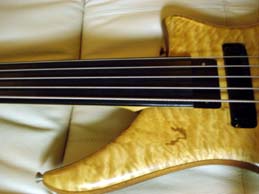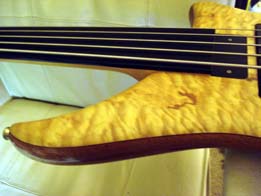 Kris asked about the top end & like his quilty maple, its amazing - that fretless zing really comes out as you move up & then at the upper register the 'wah' sings double - if you play it alone no amp in a quiet room you can hear the high frequences reflecting off the maple while the body holds tose low tones...
