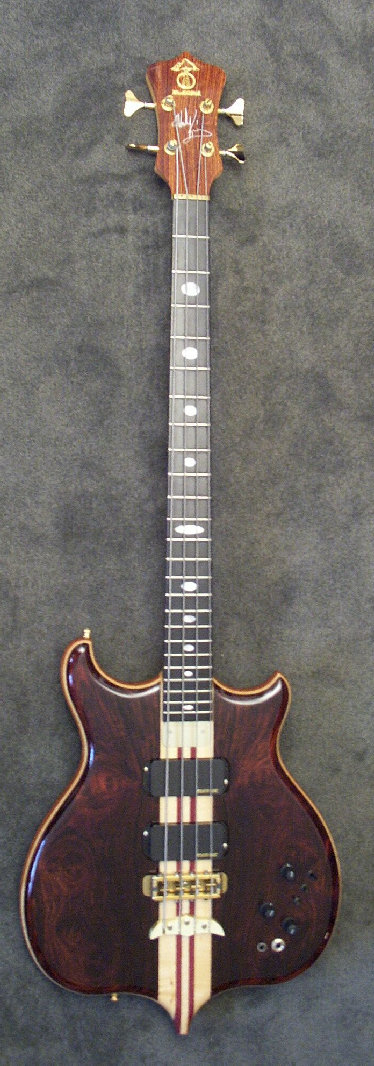 Your bass is, of course, very familiar; it's good to see that it has found another loving home.  The electronics on your bass look like Rogue/Europa electronics; volume, pan, tone filter with 'q' switch, plus bass & treble 3 position switches and of course the on/off switch for the leds.