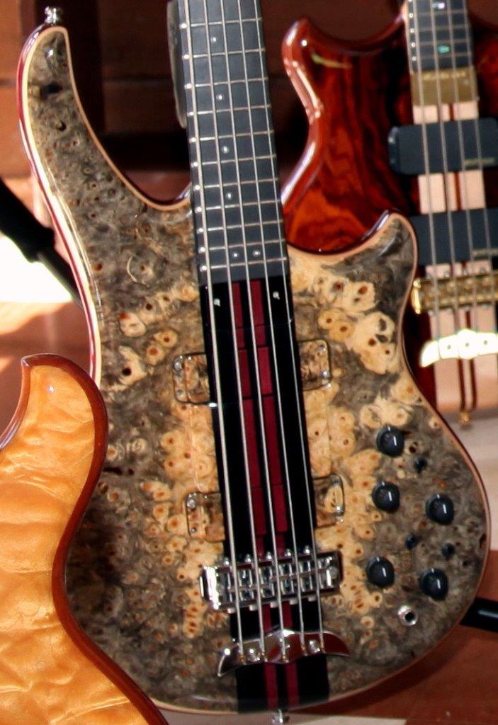 The Buckeye Burl Essence caught my eye in the group shots. I'm happy to see some closeups. I really like the way the racing stripe carries through the pickups.