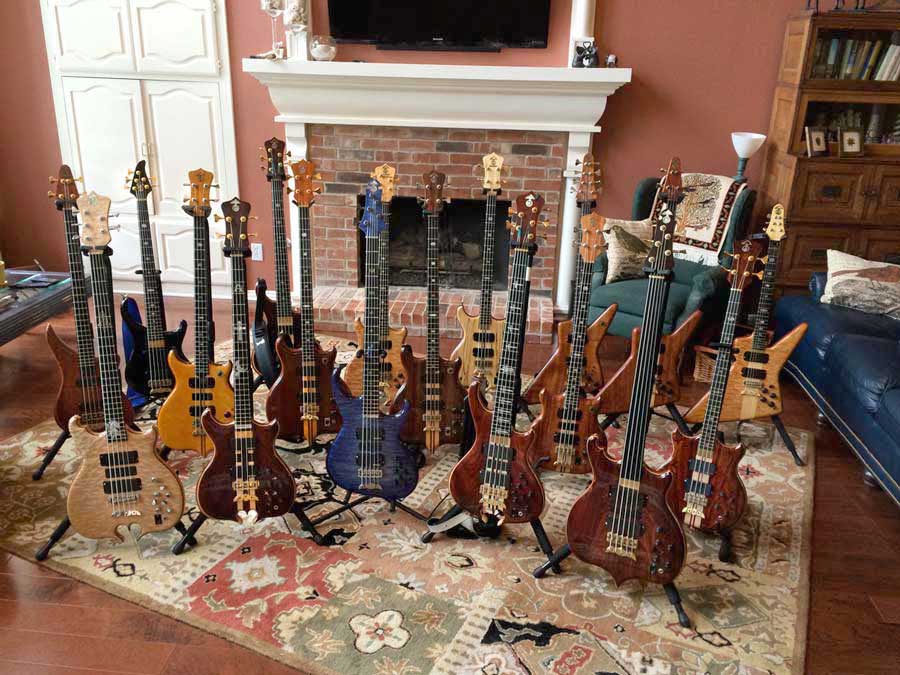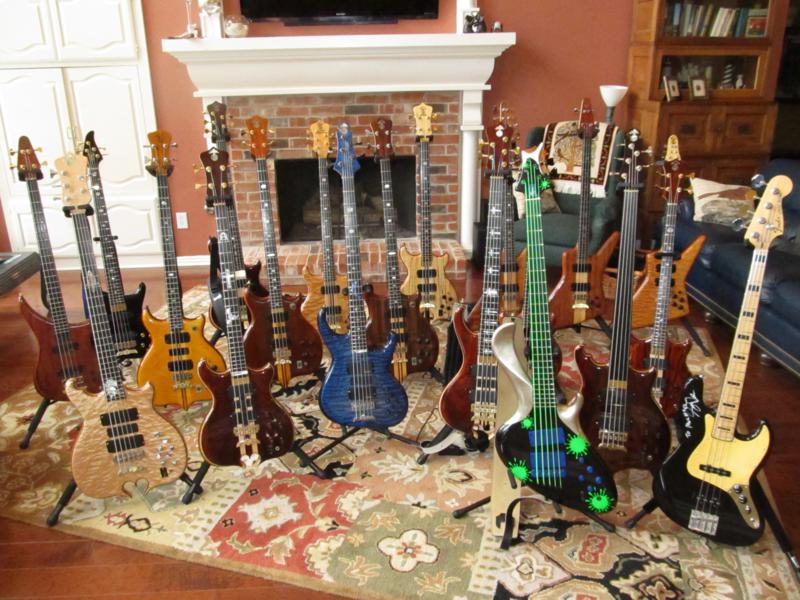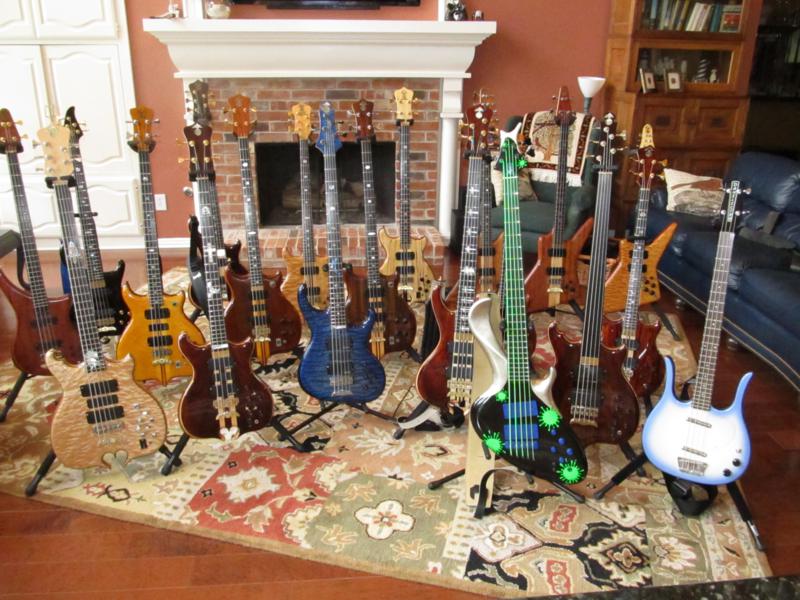Counting the other instruments around, another 6 guitars and another 6 basses, so 30 stringed instruments all told - not bad for 9 owners