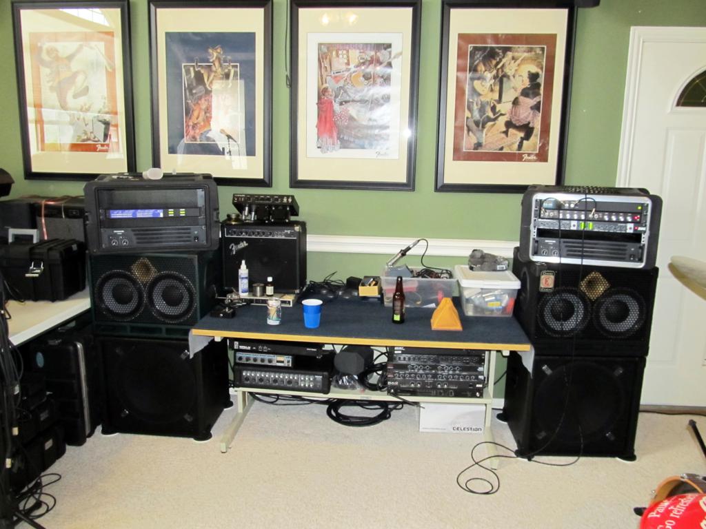 John's Amazing stereo rig with an Elf system driving two 18's & another amp driving 2 Eden 2X10 cabinets. Mike aptly dubbed the rig the "Fracking Machine!" If you hear a news report about a house in Plano Texas collapsing, you will know that John turned his rig up past 2! This thing has some serious horsepower!!