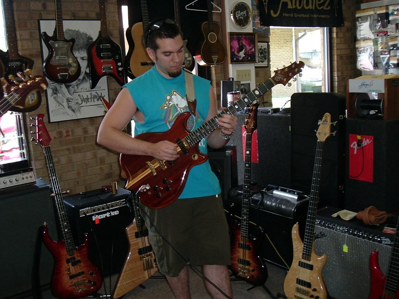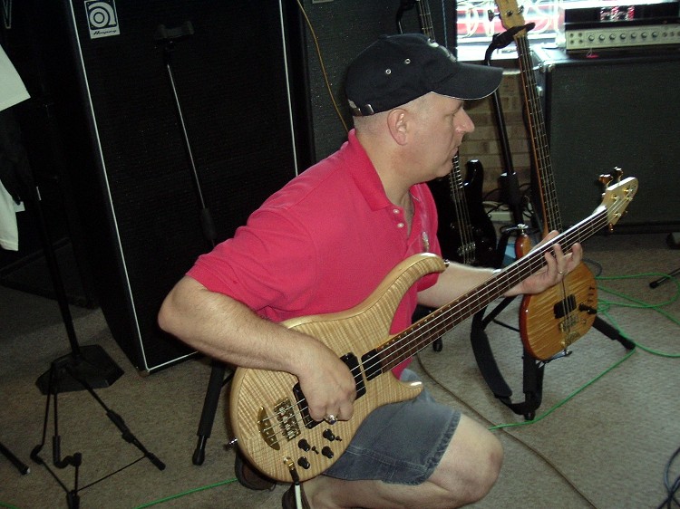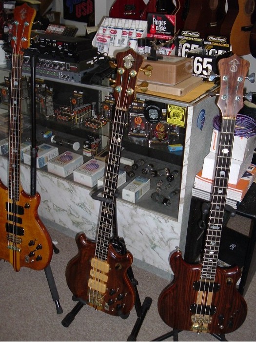 It's interesting.  Although I had never met Alan, Chuck and Mike in person, I felt a kinship with all three of them.  All three are great guys and it was very nice to be able to spend time with them.  In fact, the day ended to soon; we spent so much time gawking at all the beautiful instruments, we didn't get to do any organized group playing; and I wish we could have spent more time together.  I did get to hear Alan play, and he's a great player, as Mica had told me earlier.  And I tried out a lot of the basses.  I especially enjoyed the tone of Mike's Excel; and I now know why Rami and others love Excels with Ash bodies.