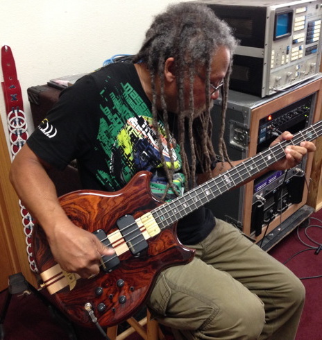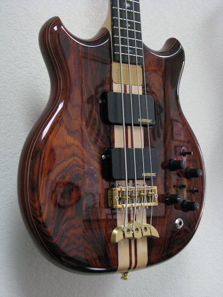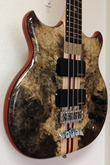 2023 Mark King 5 String, Buckeye Burl via Will Gunn Guitars. With added 5-pin jack
