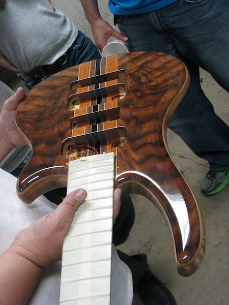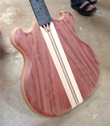 Stunning crotch walnut top. Note the neck recipe.