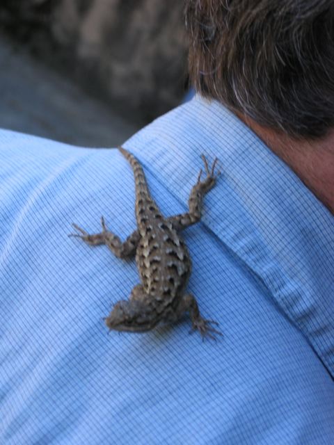 The first thing that I saw when I showed up were nice folks hanging out with Lizards! (Western Fence Swift)