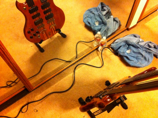 And trying out my Stanley Clarke (with the doubleneck in the background)