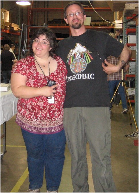 I'm toward the right side,wearing the tie-dyed Alembic shirt in the group shot. My drummer Andy is next to me with the black non-alembic shirt, Juel from Cremer Guitars is in front of me in suspenders. Keith H. from Carolina is behind me in a plaid shirt. John Judge is standing behind Andy. Roger is kneeling on the far left, and Bill Panzer is sitting in front of him and Ollie.