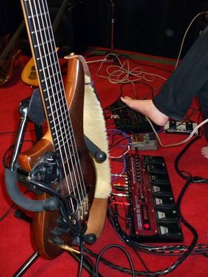 At 4:30/5:00ish Chris shows up with his two Alembics and a high 'mojo' Mesa head.
