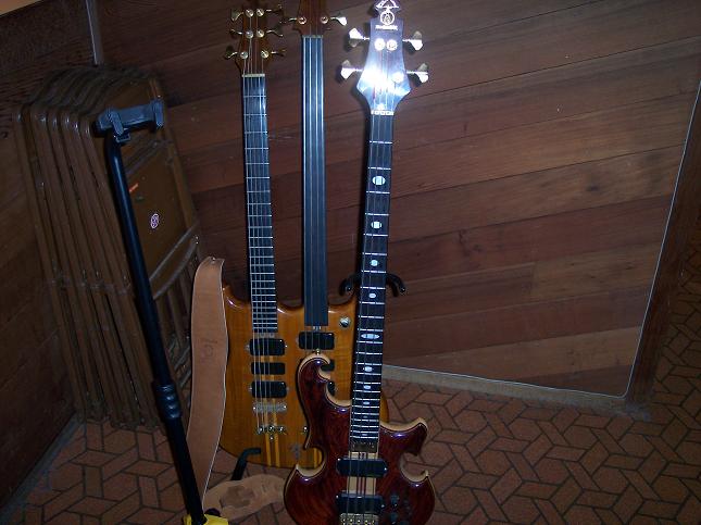 I go to all the trouble of helping to put this thing together and I still don't get no respect! (O.K., that's two comedy catch phrase references - thanks Steve and Rodney).  Look closely and you might notice there are several NOT basses.  These are called GUITARS!  I know it can be difficult to tell the difference, but there are some obvious clues: