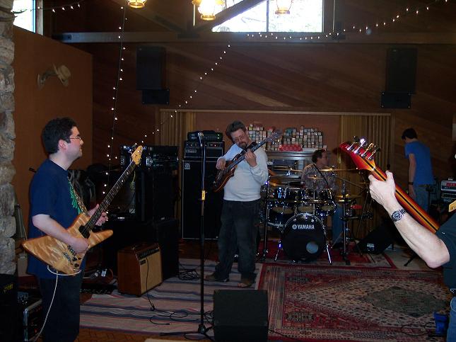 Well, better late than never, I suppose.  We got to the cabin right around 2:00 on a gorgeous day. I promptly added my basses to rather sizable guitar collection that Bill had emassed.