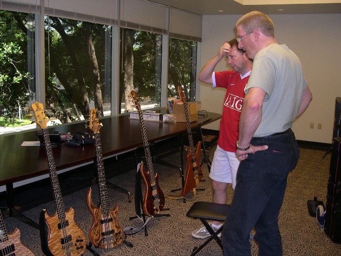 Well here are few pix that I took. I didn't get very many photos. I was too busy drooling over Waynes fretless.   And by the way Christians new Seismic bass is SMOKIN'. It is one sweet axe. I love the size of it and the Zebra wood is WAY cool.  All in all it was a great time for all I do believe. I'm ready anytime you guys are.   It's really great to see and hear so much humble talent in one place. No egos at all. You guys are the best.