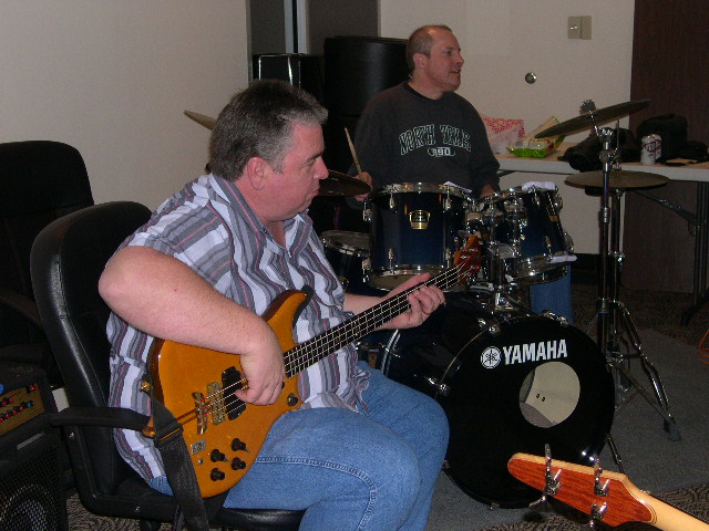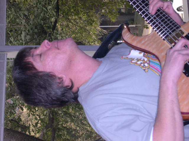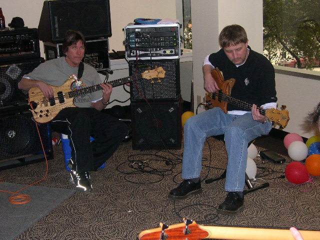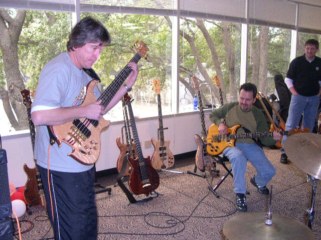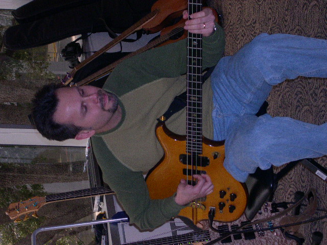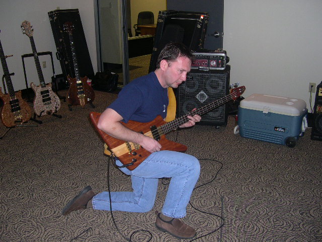 Mike playing Jorge's zebra wood Distillate.  I think he tried out more basses than anyone . . . he could be getting AAF . . . Another Alembic Fever!