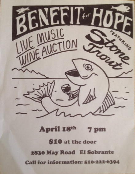 My non-Dead band Stonetrout,(though we do play a few Dead tunes), will be playing a fundraiser at our bass player's church in a couple of weeks. Two sets with a wine auction during the break. We even have a poster! (Big advertising budget).