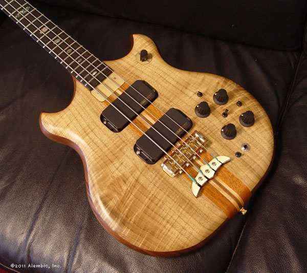 And the top is really lovely in person. That gentle bit of flame figure, and the hint-of-green coolness of the Myrtle is so pretty. With the oil finish, it's a very elegant bass. It sounds a little peppier than a standard Brown Bass too.