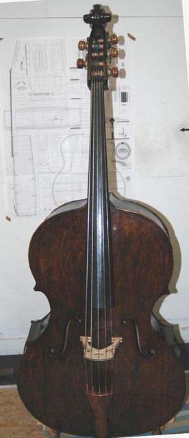quote:... It is made on a virtually identical form to the ?Dumas? [hey, that's me!] ... [Maggini's basses] were strung with either five or six strings and were mounted with fingerboards that were far shorter than those in use today. The necks were wrapped with gut frets at the first seven semitones. ... technological improvements in the winding of gut strings probably influenced the design and size of bass instruments as players and makers sought greater power and clarity.?
