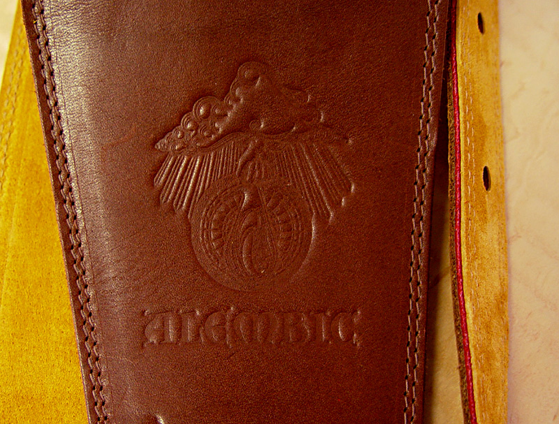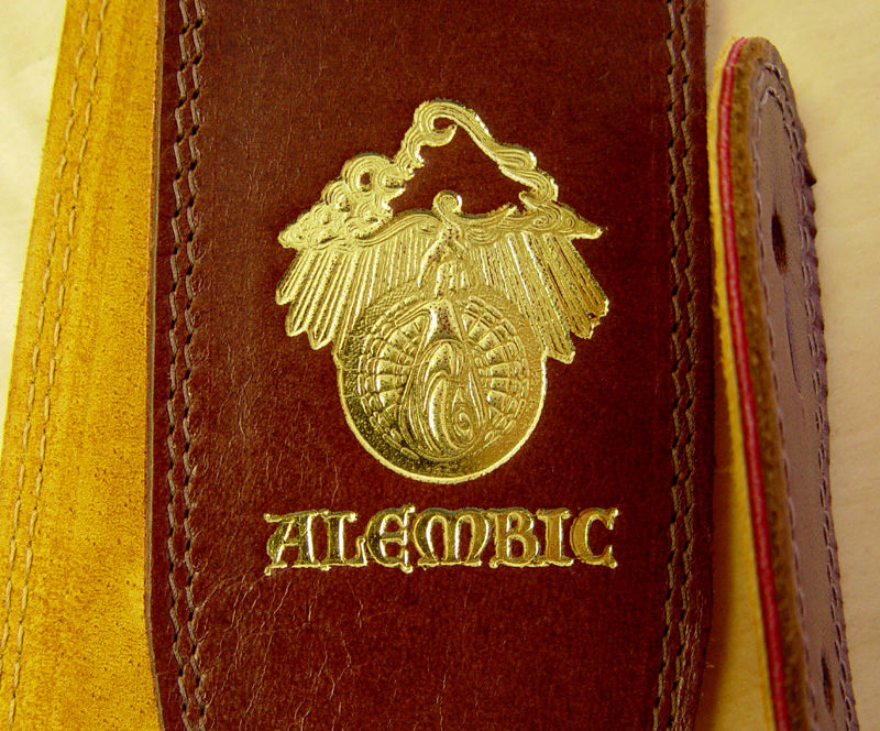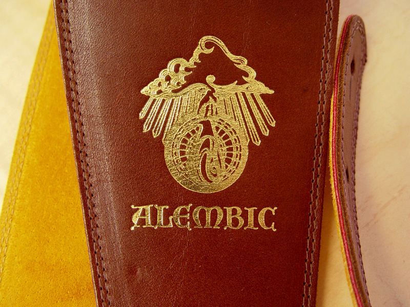 Alembic leather straps are available in a new color. Rosewood is a rich reddish brown. We've layered it with red and curry - looks great with Coco Bolo Alembics!